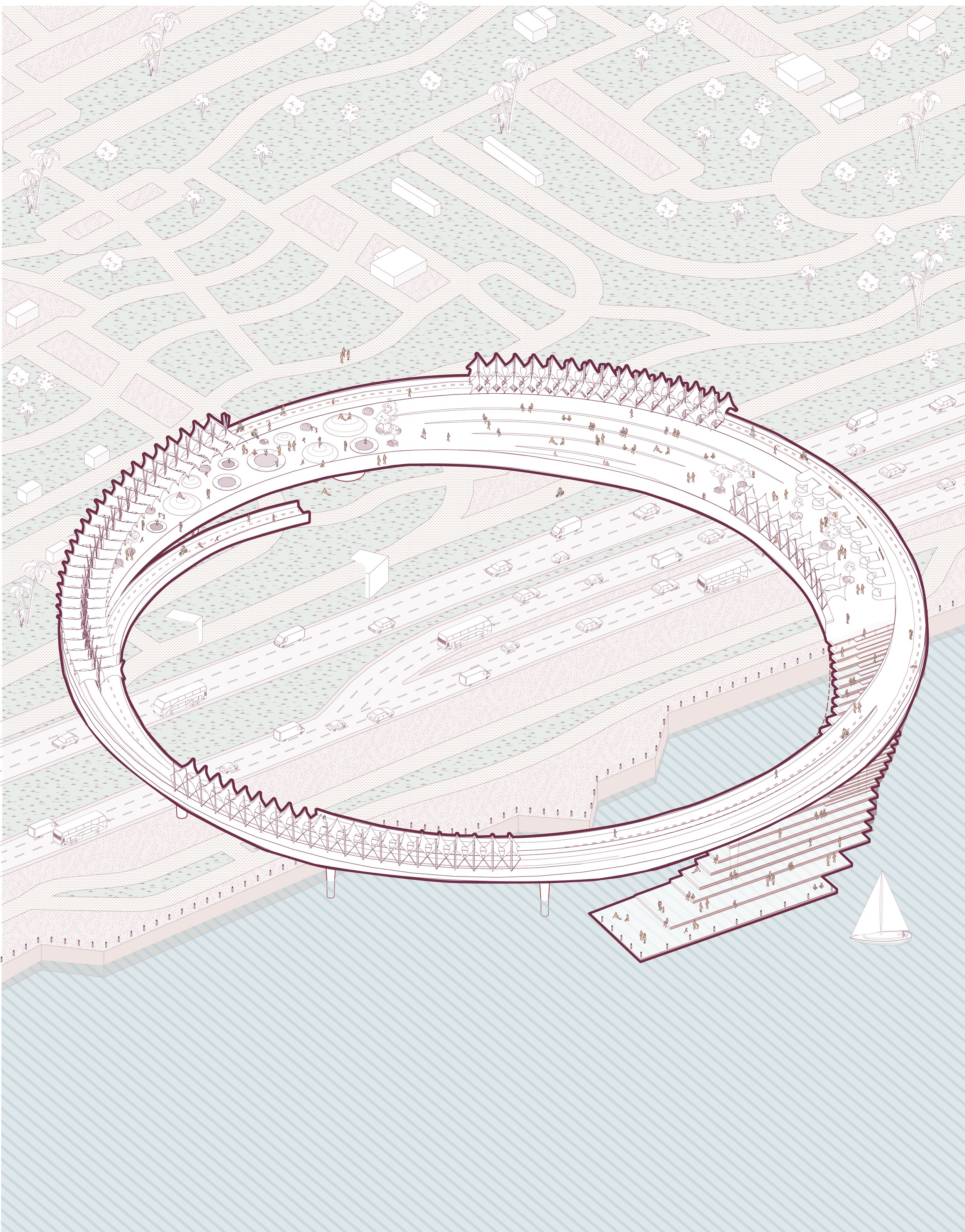 Doha is a city of remarkable ambition — one that has redefined itself in just a few decades as a global cultural and urban hub. Yet during my time in Doha in 2024, I sensed the disconnection between the Corniche and the vibrant city fabric beyond it: two extraordinary urban anchors separated by a highway, rather than united in continuity. It was from this observation that the idea of Wasl Al-Bidda_ Suspended Plaza was born — a suspended plaza that reimagines infrastructure as civic space, stitching together city and sea.